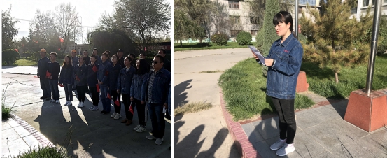 上午9時整,升起儀式正式開始,激昂的《義勇軍進行曲》莊嚴響起,擎旗手揮臂揚起,五星紅旗冉冉升起。全體團員青年面向國旗列隊并行注目禮,共同祝愿偉大祖國繁榮富強,祝福物產(chǎn)明天更加燦爛美好。