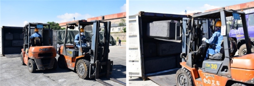 鏡頭五:散貨堆場(chǎng)內(nèi),工藝車隊(duì)"叉車卸運(yùn)集裝箱"技術(shù)比武吸引了大量下班途中的職工駐足觀看。選手們以嫻熟的駕駛技術(shù),將集裝箱內(nèi)堆放的炭塊接連不斷地掏出,并運(yùn)送至指定板車上。大家你追我趕、競(jìng)賽氣氛異常激烈。