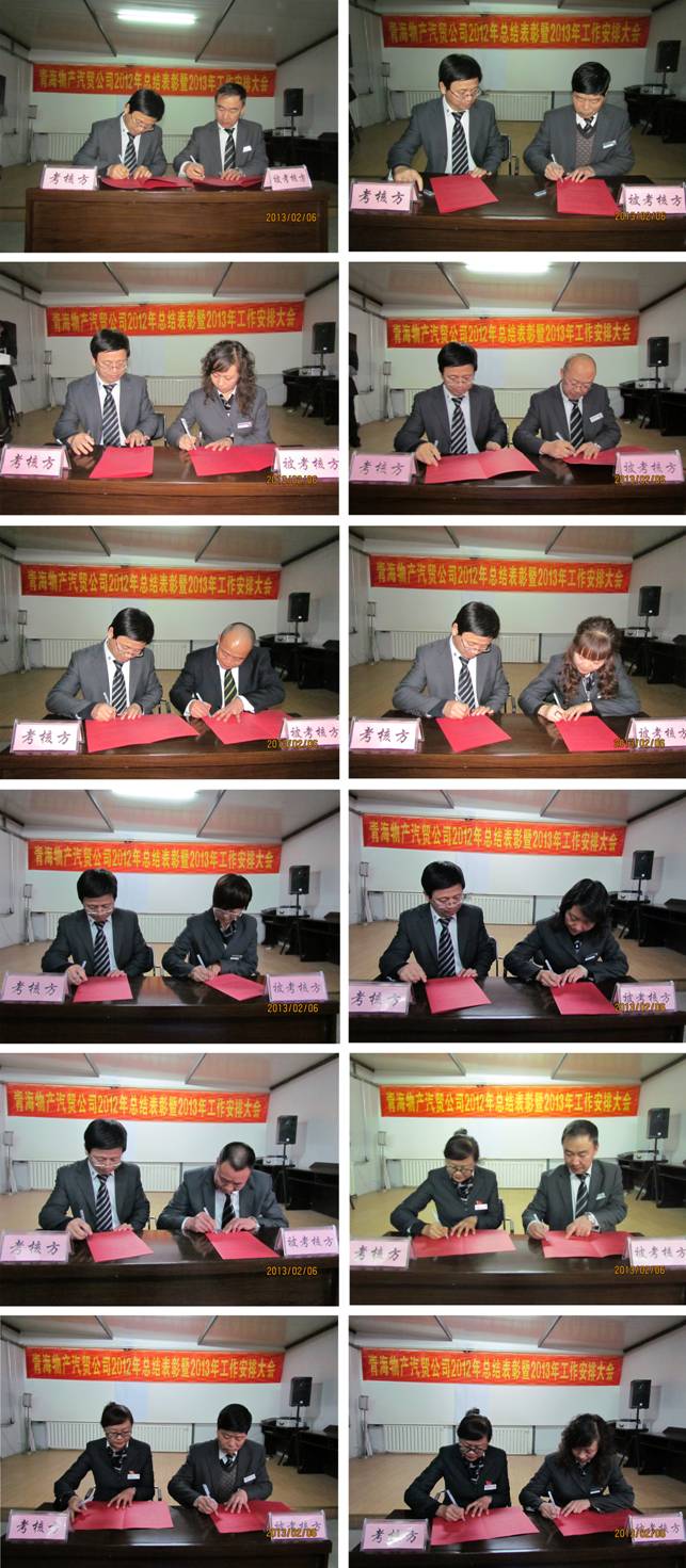 最后,公司總經(jīng)理與各部門簽訂了《2013年度生產(chǎn)經(jīng)營(yíng)目標(biāo)責(zé)任書(shū)》,支部書(shū)記與黨員、非黨員部門負(fù)責(zé)人簽訂了《廉政建設(shè)責(zé)任書(shū)》。